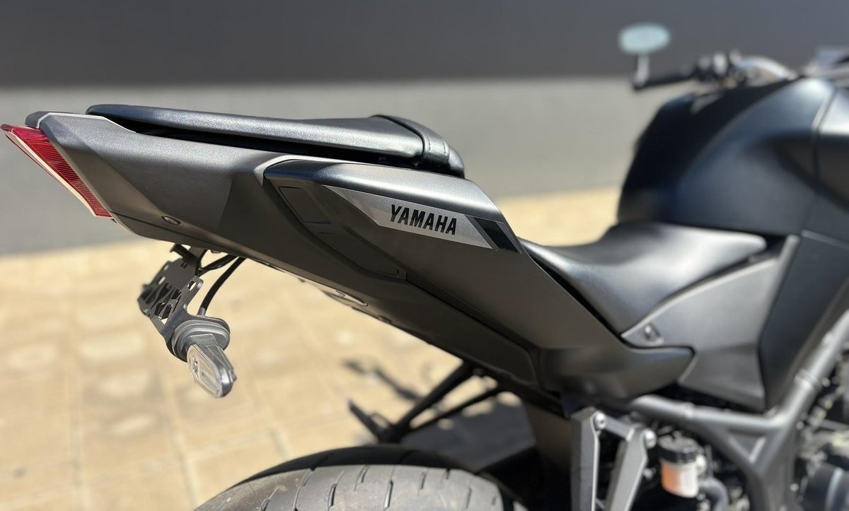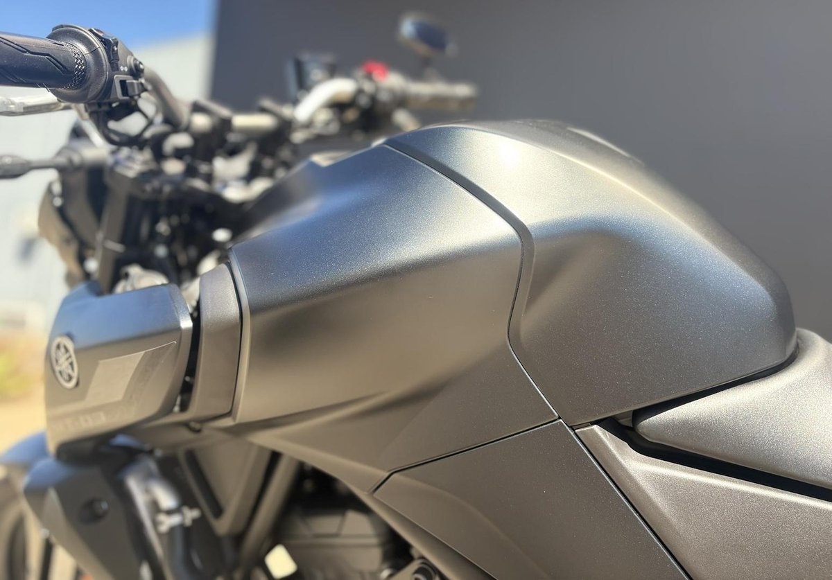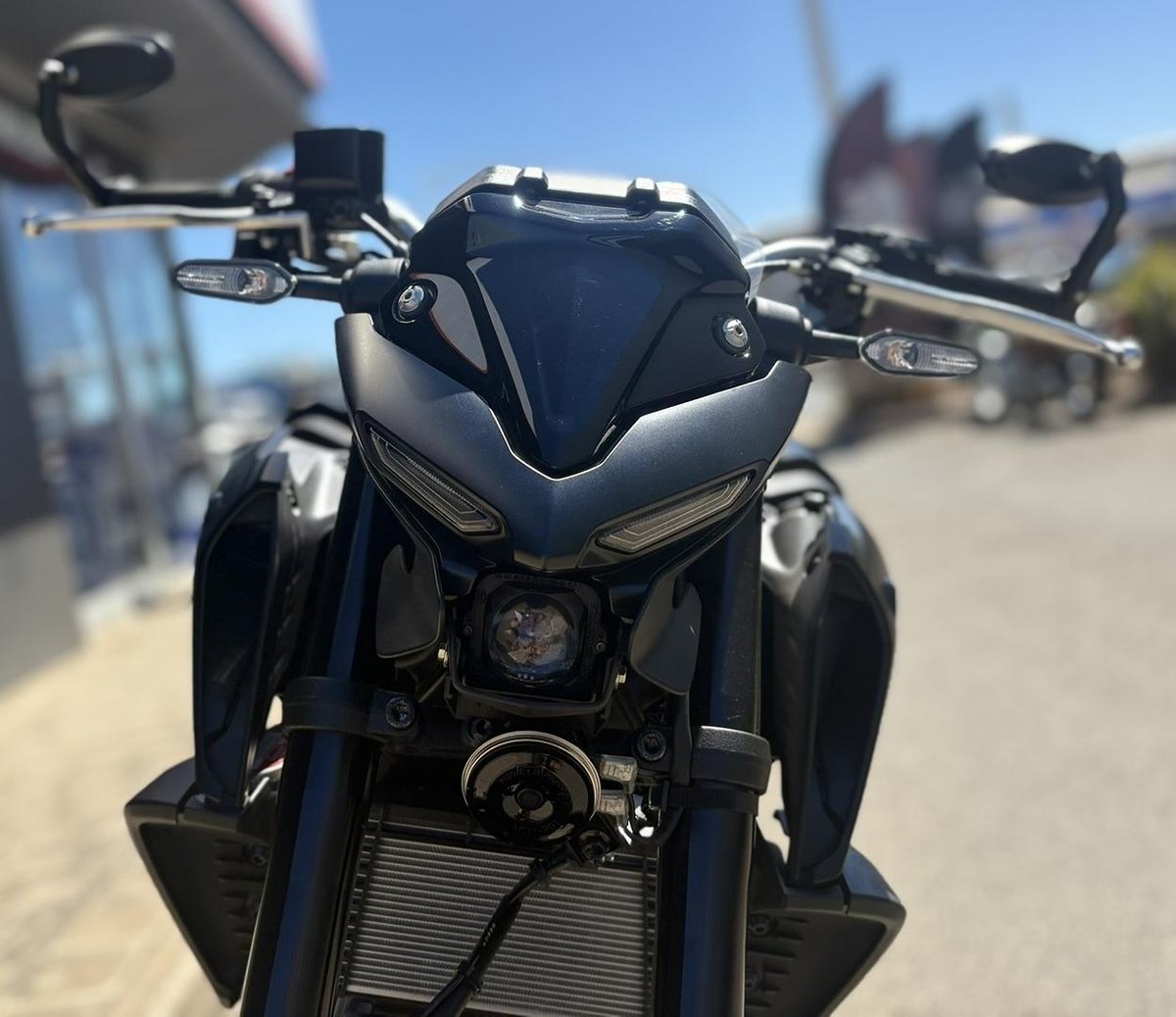 This isn’t your standard MT-03. This one’s been given the dark treatment and sharpened up properly: